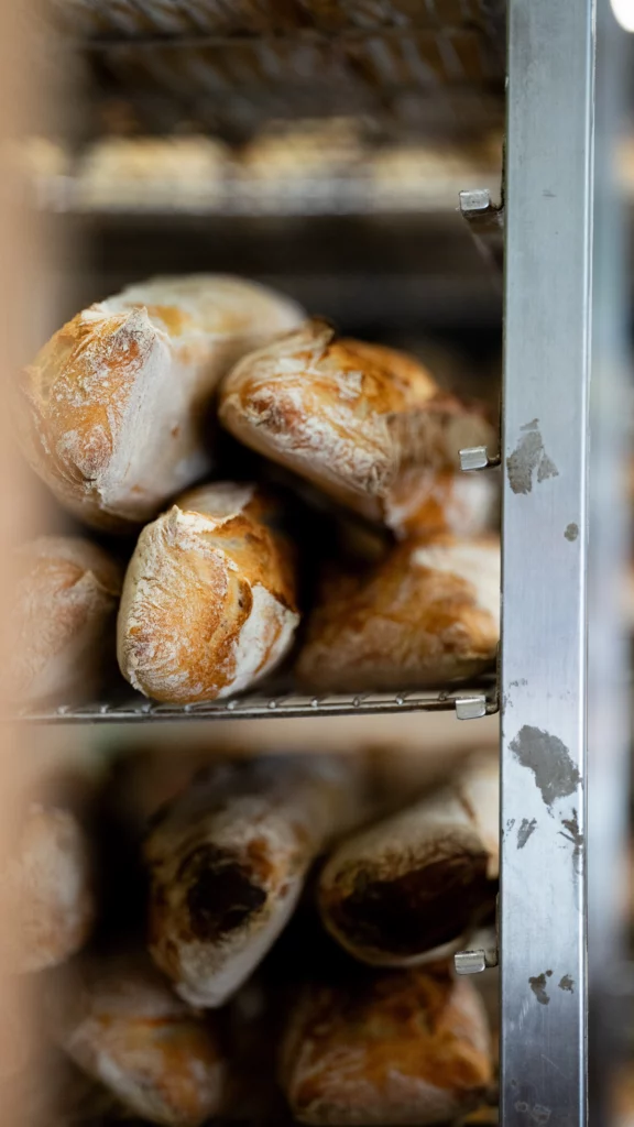 Chaque jour, nous façonnons à la main des pains de caractère, élaborés avec du levain naturel et des farines artisanales issues du Moulin Roos à Rosenau. Le levain, travaillé avec patience, permet de révéler toute la richesse des arômes, d’assurer une meilleure conservation et d’offrir une mie plus digeste.