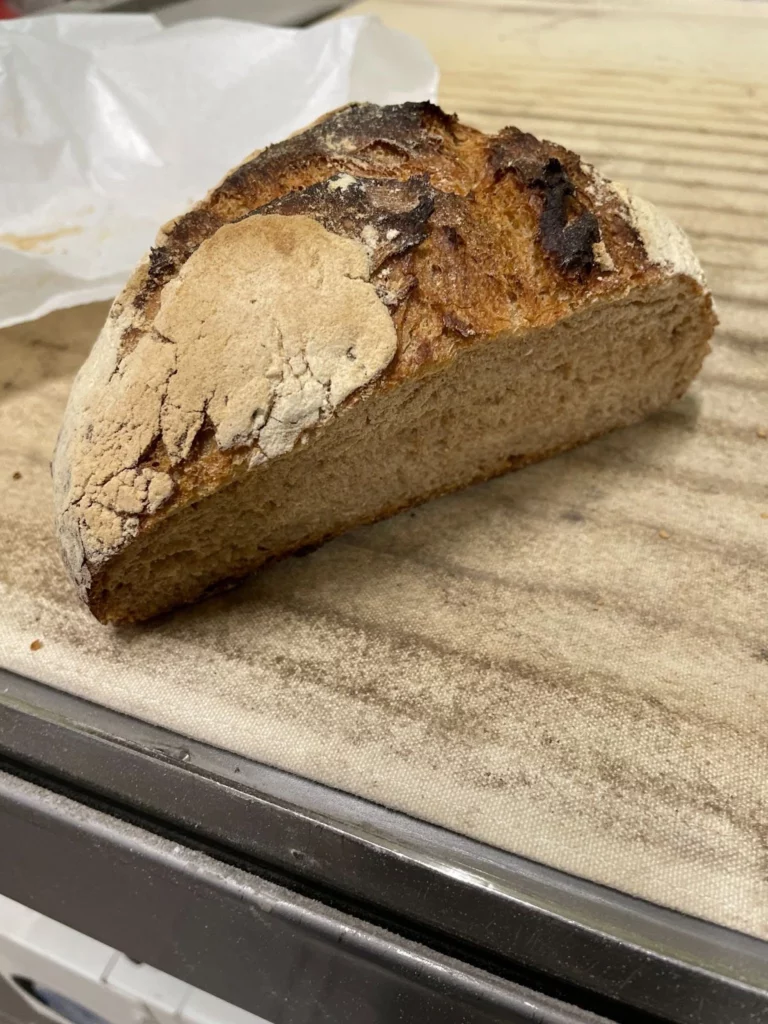 Notre levain naturel a 11 ans et a été amélioré il y a 2 ans avec l’arrivée de notre moulin à la meule de pierre.